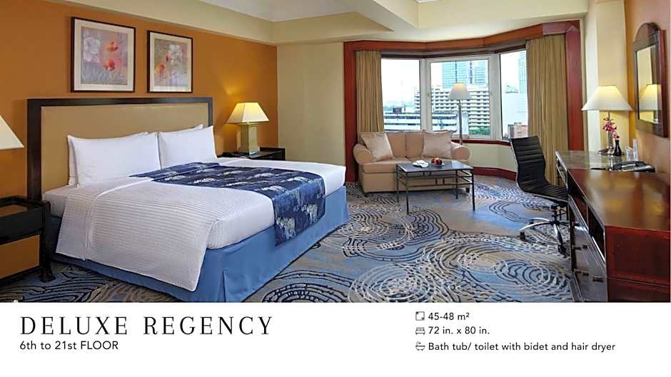 • Buffet breakfast at the Diamond Club Lounge from 6:00 to 10:00 • Express check in and check out at the Diamond Club Lounge (25th floor) • Complimentary welcome fruits and daily delivery of newspaper • Suit press service for 1 suit per day and shoeshine service • Waived fee for local city calls and 20% off on IDD calls • Unlimited in-room Wi-Fi access at 6 mps for up to 5 devices • Use of the computer workstation with Internet access at the Diamond Club Lounge • Dedicated Concierge services at the Diamond Club Lounge from 6:00 to 10:00 • Use of Health Club facilities such as gym, pool, sauna, and steam bath • Tea service with snacks at the Diamond Club lounge from 11:00 to 17:00 • Cocktails at the Diamond Club lounge from 17:30 to 20:00